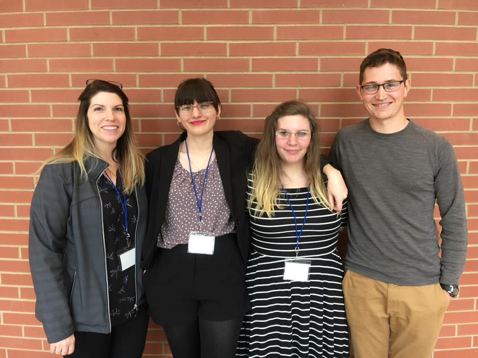 Jen Kania (far left) and Adam Smith (far right) (sociology majors) attended the event to offer support and gain experience.