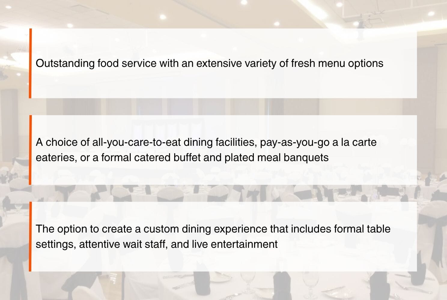 Whether you are planning a business or youth conference, corporate training workshop, spiritual retreat, sports camp, or educational symposium, our professional event management team takes a personalized approach to hosting conferences and events of all styles and sizes.