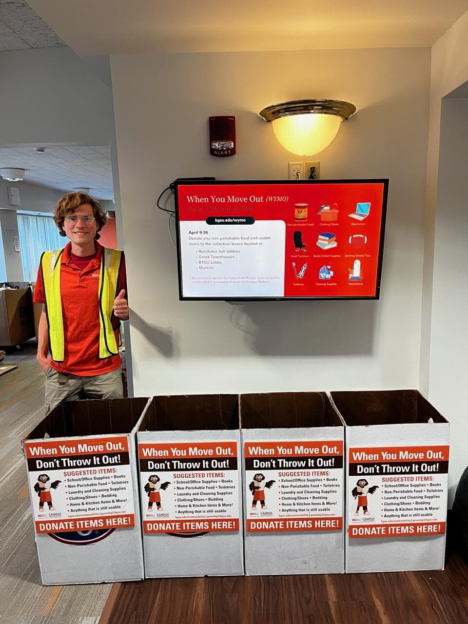 When you move out, don't throw it out! Donate clothing, non-perishable food, and anything else still useable to benefit those in need in WYMO collection boxes! Donation boxes will be in place until the Res Halls close for the year. Items are redistributed to the campus and local community, and local non-profits. For more details on acceptable items, visit: bgsu.edu/wymo