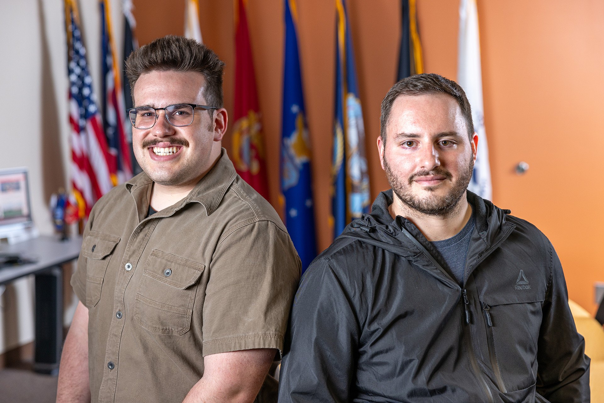 BGSU students and active military servicemen Grant Hayden, left, and Christopher Ogle, right, have been selected as National Veterans Leadership fellows. (BGSU photo/Craig Bell)