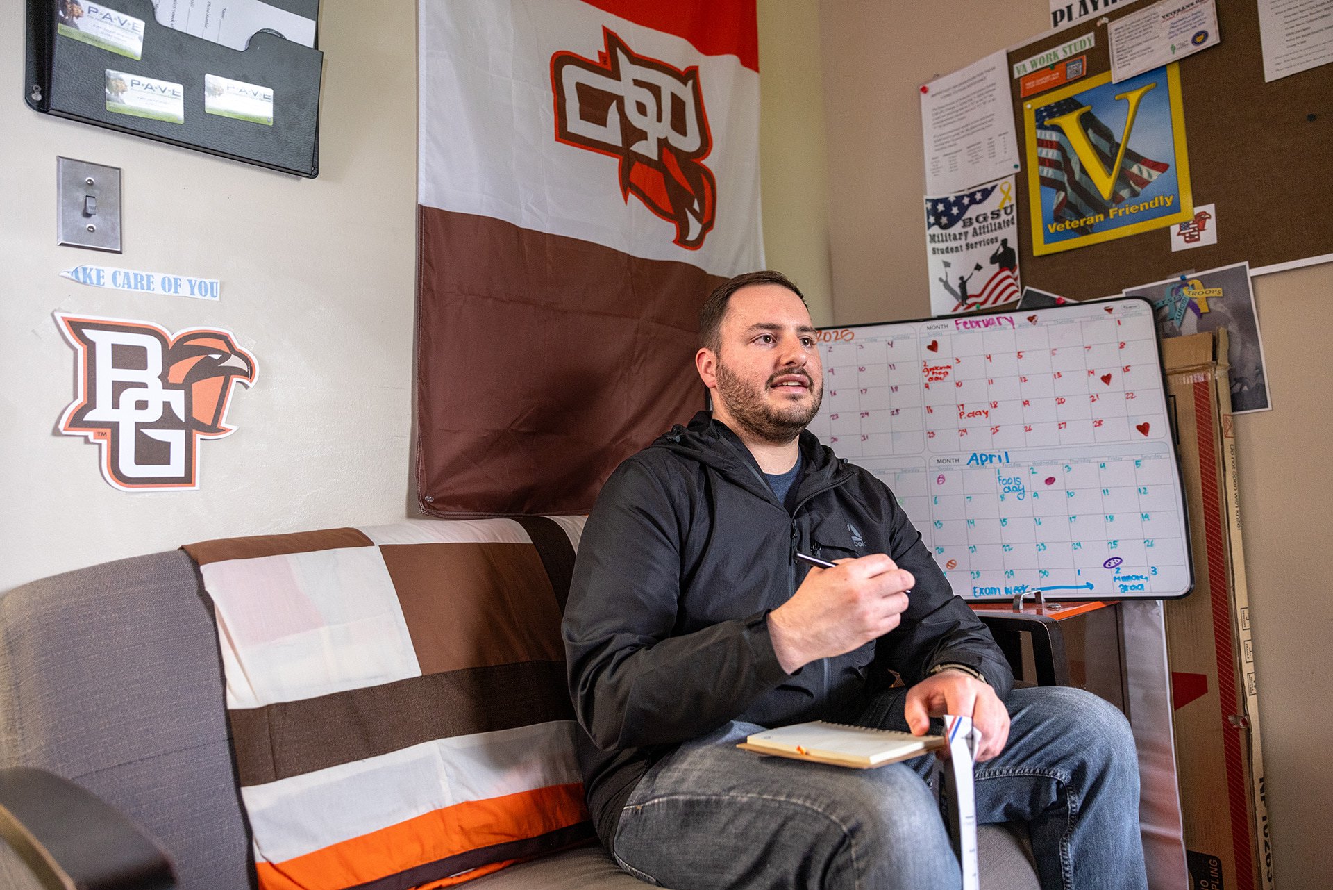 With deployments interrupting his education, Christopher Ogle credits the staff of the Nontraditional and Military Student Services with unwavering support. (BGSU photo/Craig Bell)