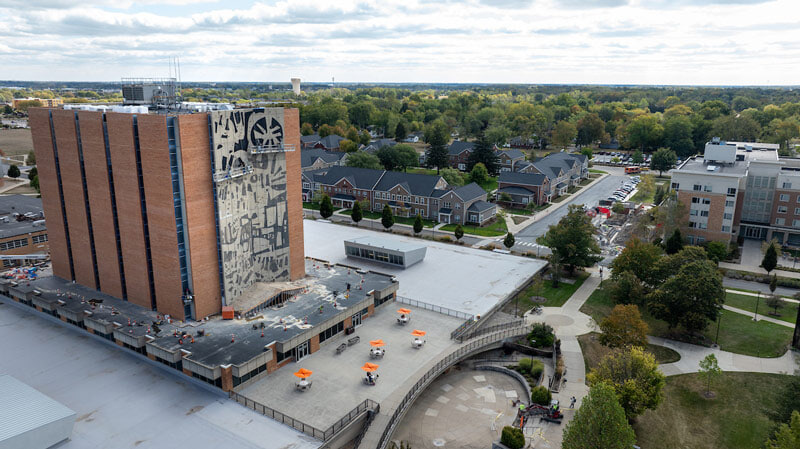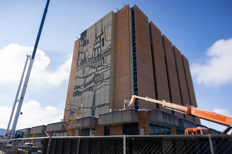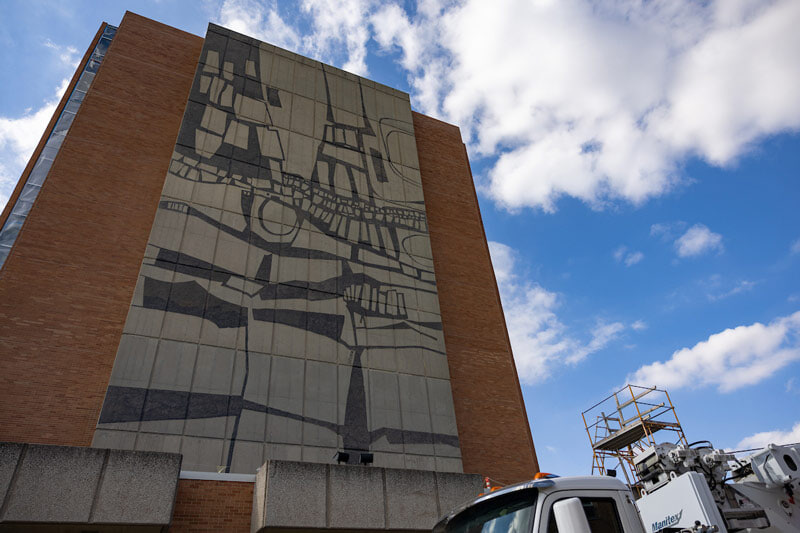 The iconic mural adorning the east and west sides of the William T. Jerome Library at Bowling Green State University has now been restored, the culmination of a comprehensive renovation project that began in the fall.