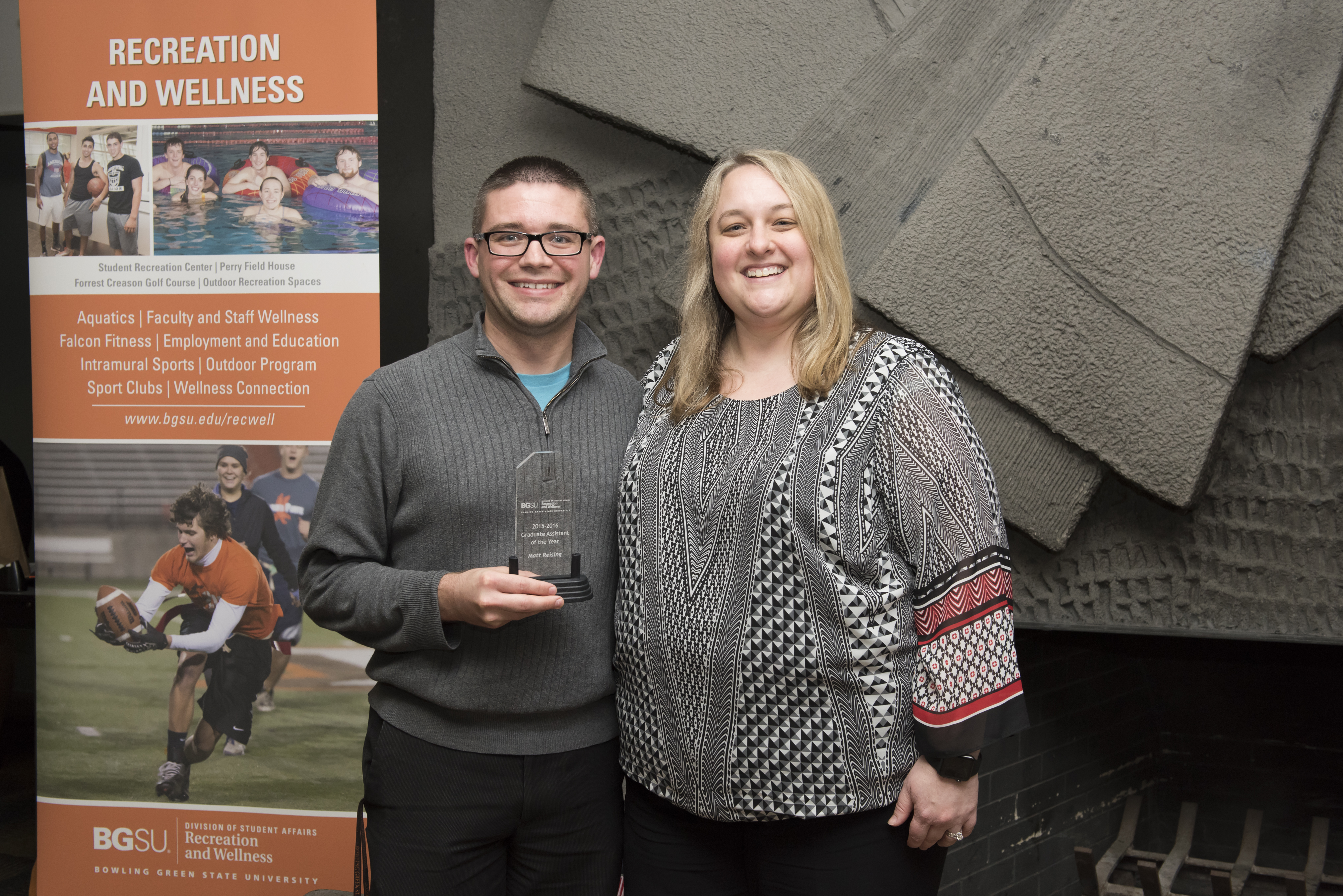 Annually the Offices of Recreation and Health & Wellness acknowledge and reward four deserving students as best in their specific job roles throughout the department who demonstrate exemplary dedication to the mission and the core values of Bowling Green State University. Students are nominated by peers, supervisors, graduate assistants, or professional staff members and are also required to complete a formal application.