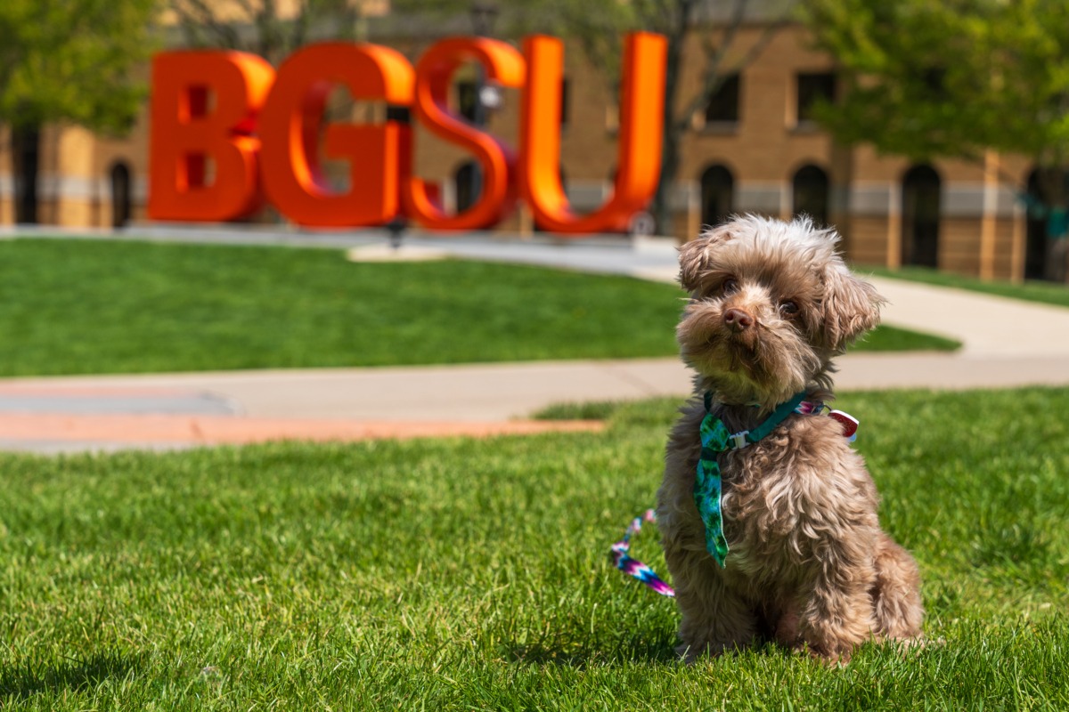 Murphy, bichon frise, served as a therapy dog for over 17 years. In addition to supporting the BGSU community, Murphy also visited libraries, hospitals, nursing homes, and many other locations in the community.